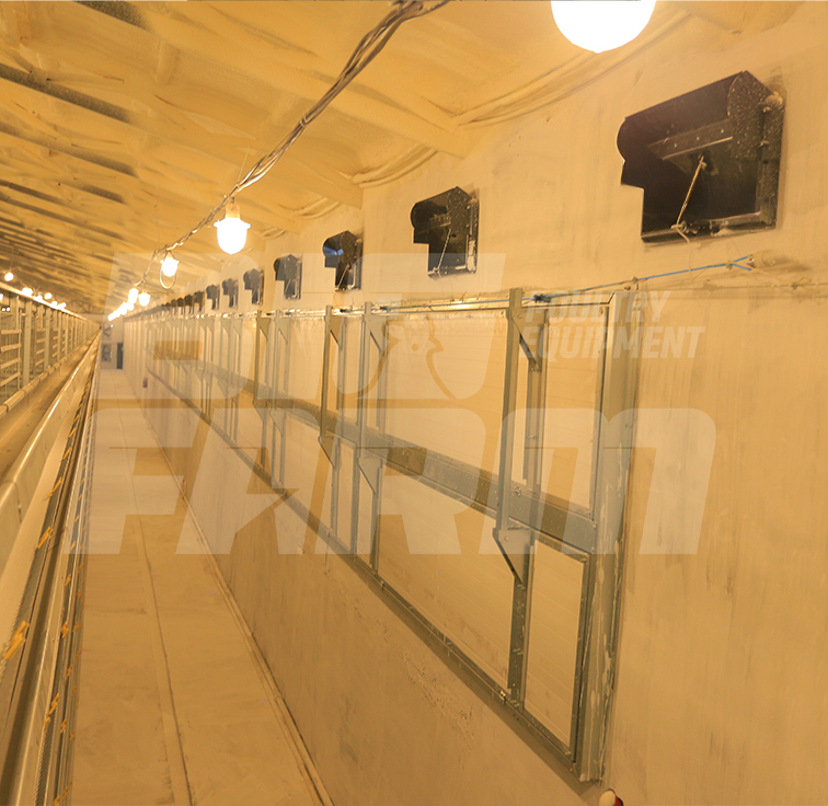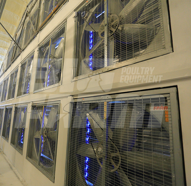Процессы поэтапного включения и отключения вентиляторов, установленных в соответствии с вместимостью птичника, контролируются PLC-системой. Это обеспечивает энергосбережение и равномерное распределение воздуха внутри птичника.